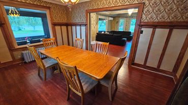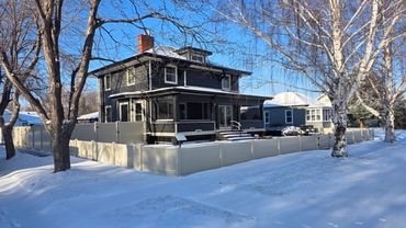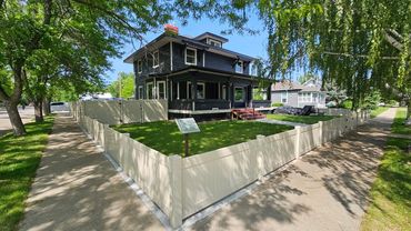 Situated on a 10,500 sq. ft. fenced corner lot, this property is ideally located just one block off Main Street, directly across from the historic Rosebud County Courthouse, county museum, and park. This home is ideally located within walking distance of local amenities. The residence offers significant square footage across multiple levels, including a partial basement with an egress window (1,136 sq. ft.), a main floor (1,968 sq. ft.), a second floor (1,112 sq. ft.), and a third-floor finished attic (280 sq. ft.) Total square footage, from basement to attic is approximately 4,496sq. ft. Recent exterior updates include a new roof, new windows, new siding, gutters and vinyl fencing. The main floor features formal living and dining rooms (original light fixtures) with a gas fireplace, a kitchen with a butler's pantry, and a classic screened porch. Additionally, a private wing with a separate entrance currently serves as a studio rental, complete with a gas fireplace, kitchenette and a full bath featuring an oversized jetted tub. The second floor provides three large bedrooms and two baths, while the third floor offers a versatile space suitable for an additional bedroom or office. Wood floors have all been recently refinished. Modernized for comfort, the home is equipped with a commercial boiler system and a recent commercial air conditioning system with nine splits. Updated efficient, hot water heater. The property also features an attached, heated two-car garage. Given its residential/commercial zoning, this property is perfectly suited as a spacious family home, a rental investment, or a bed and breakfast.